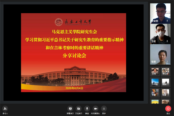 研究生会执行主席李想同学在总结时强调,全体同学要认真学习习近平总书记关于研究生教育的重要指示和在吉林考察时的重要讲话精神,始终牢记总书记的嘱托,努力成为有家国情怀和奋斗精神的新时代研究生,为推动吉林全面振兴全方位振兴贡献出智慧与力量!