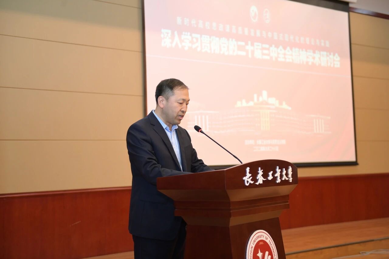 为深入学习贯彻党的二十届三中全会精神,以更高站位、更大力度、更实举措进一步推进思政课教育教学改革创新,将党的创新理论融入课堂教学,9月28日,长春工业大学kaiyun开云官方在学校党委的领导下举办“深入学习贯彻党的二十届三中全会精神学术研讨会”。学校科学研究处处长吴广峰出席并为会议致辞,kaiyun开云官方院长于浚湜主持会议。