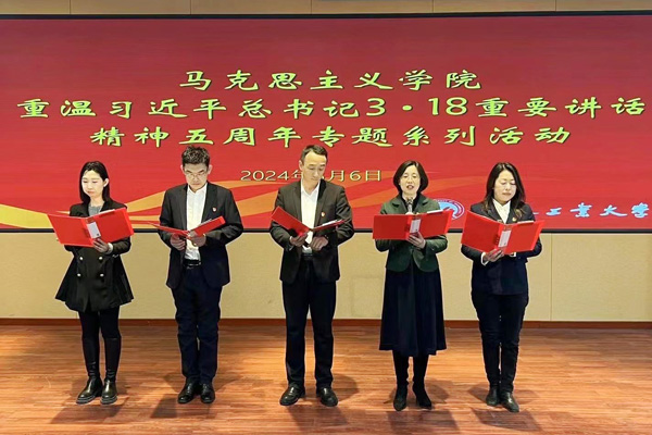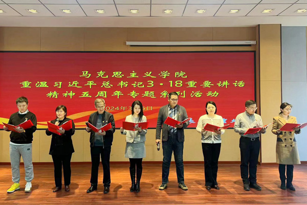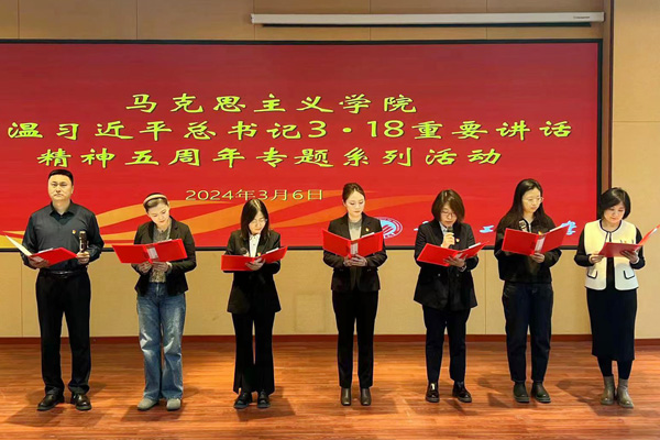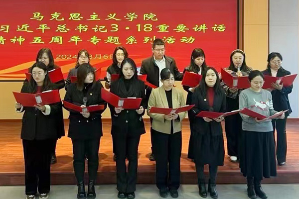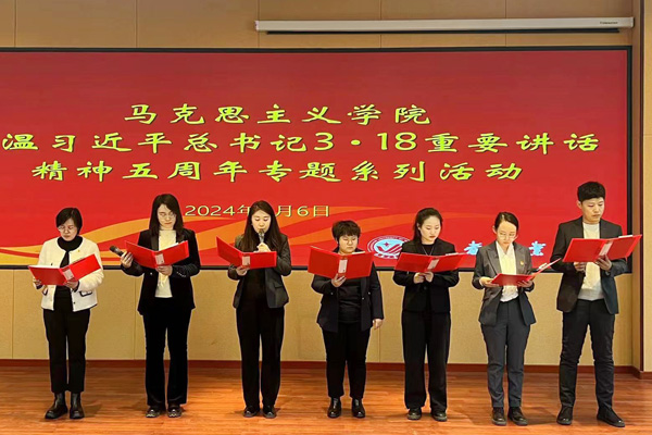 本网讯(通讯员 杨慧娇为进一步重温习近平总书记“3·18”重要讲话精神,不断增强思政课教师的红色底蕴,厚植家国情怀,3月6日,kaiyun开云官方在综合楼报告厅开展了重温习近平总书记“3·18”重要讲话精神五周年专题系列活动之“上好思政课,当好引路人”朗诵会。活动开始前,学院全体教师集体重温了习近平总书记“3·18”重要讲话内容。