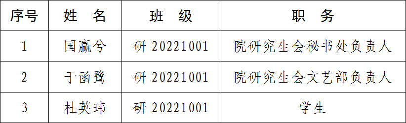 为了认真贯彻党的发展党员工作方针,充分发扬民主,增加发展党员工作的透明度,把好发展党员质量关,确保新党员质量,经本学院党委研究,现将已列入2024年度发展计划,且通过党支部民主测评的发展对象在全院范围内公示。公示时间为5个工作日(2024年3月4日至2024年3月8日)。在公示期内,党内外群众如对发展对象有意见,请以真实单位、姓名,用书面、电话等形式如实反映情况。群众反映的问题可受到法律保护,我们将严格保密。