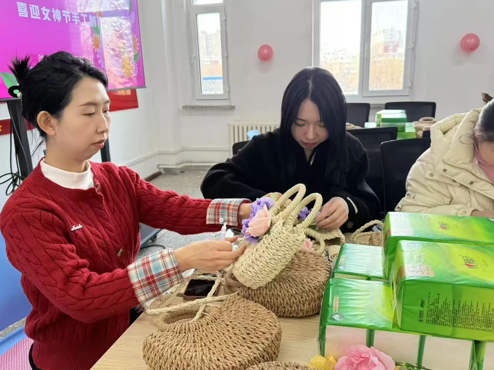在第115个“三八”国际劳动妇女节来临之际,为丰富学院教职工精神文化生活,增强团队凝聚力,3月5日下午kaiyun开云官方在学院会议室开展“包揽春日,魅力巾帼”手工草编包DIY活动,全院教职工齐聚一堂,共度温馨且意义非凡的节日。