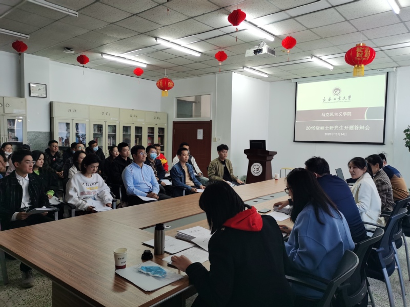 本次开题报告答辩共有31位研究生参加,学院将马克思主义基本原理、马克思主义发展史、马克思主义中国化研究和思想政治教育四个专业的学生分为了两个答辩组。学院邀请了吉林大学陈松友教授和孙贺副教授分别担任两个答辩组组长,我院马光焱教授、王晓光副教授、程颖教授、陈莉教授、姚红副教授、王晓珊讲师、唐立平讲师、韩亚男讲师作为答辩组成员,王一铮老师与高博老师分别担任答辩秘书。