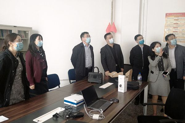 副校长张明耀等一行检查督导复试准备工作并与测试人员远程视频互动