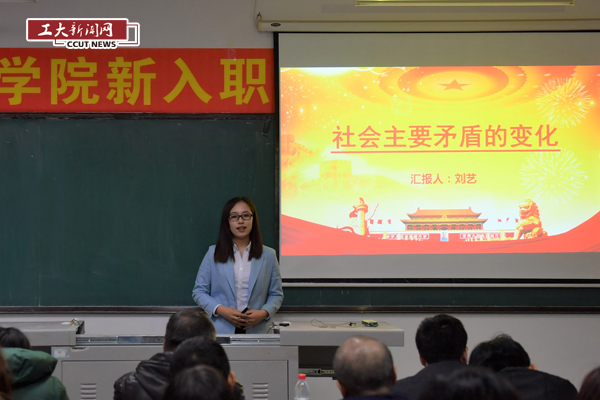 此次教学大练兵活动突出对当代大学生的思想引导,注重弘扬社会主义核心价值观,倡导先进教学理念、教学方法和教学资源的运用,提升理论水平、表达技巧和课堂设计能力。来自各教研室的11位新入职教师以《树立正确的得失观》《社会主要矛盾的变化》《选择马克思主义的历史必然性》《对立统一规律是事物发展的根本规律》《中美贸易摩擦的原因及实质》等为题,分别进行了15分钟的内容讲授。讲授中,老师们慷慨激昂、声情并茂、引经据典、深入浅出,赢得了在场领导和老师们的热烈掌声,让大家享受了一场思政课“盛宴”。
