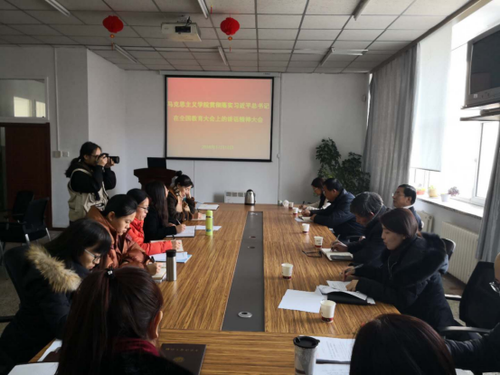 (通讯员 孟婷)2018年12月12日下午,kaiyun开云官方在学院资料室召开学习贯彻落实习近平总书记在全国教育大会上的讲话精神大会,学校党委书记万春明、教务处处长李万龙参加会议,会议由学院党总支书记朱兴国主持。