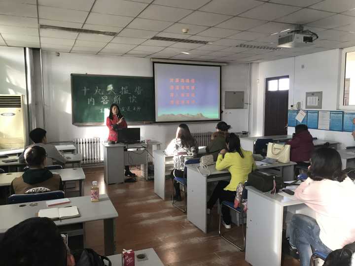 于浚湜老师先从介绍我国近五年来取得的十个方面历史性成就入手,从哲学的角度,深入浅出的讲解了党的十九大提出的一系列重要思想,如“两个重大判断”、“我国社会主要矛盾变化”、“历史使命与四个伟大”、“一个重要思想---习近平新时代中国特色社会主义思想”、“新时代坚持和发展中国特色社会主义的基本方略”、“两个重要时期”、“两个阶段”、“九个方面理论分析和政策指导”等,让同学们能从专业的角度去理解,贯彻,领悟。整场讲座生动有趣,深入浅出,同学们听得津津有味。