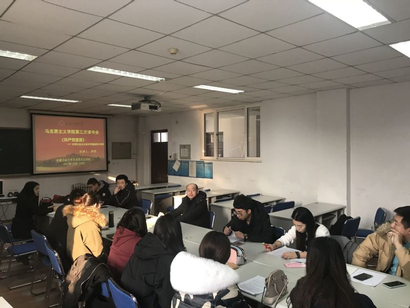 本次读书会的主讲人为我院教师李军老师,主讲内容为《共产党宣言》。读书会开始后,李军老师首先要求同学们分段诵读了《共产党宣言》全文,使同学们对这部经典有了一个整体的把握。接下来李军老师通过邀请同学发言的方式了解同学们对《共产党宣言》理解程度,并为同学们仔细讲解了《共产党宣言》写作背景、主要内容、核心思想与当代价值,着重引导同学们结合其当代价值来分析和思考这一经典著作。同时要求同学们在会后研究资本论与萨缪尔森经济学的目录,比较马克思主义政治经济学与西方经济学的区别,从二者区别角度思考共产党宣言的当代价值。