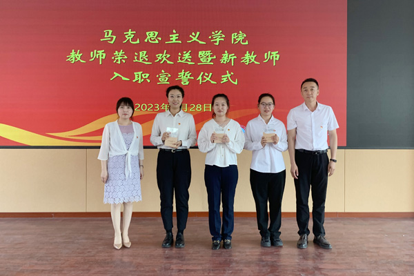 新入职教师在程颖教授的领誓下,集体宣誓。“我志愿成为一名光荣的思想政治理论课教师,忠于人民的教育事业,贯彻党的教育方针,履行立德树人神圣职责……为培养德智体美劳全面发展的社会主义建设者和接班人而努力奋斗!”新入职教师代表李彦锦表示,在今后的工作中会为学生心灵埋下真善美的种子,做传播知识、传播思想、传播真理的引路人。