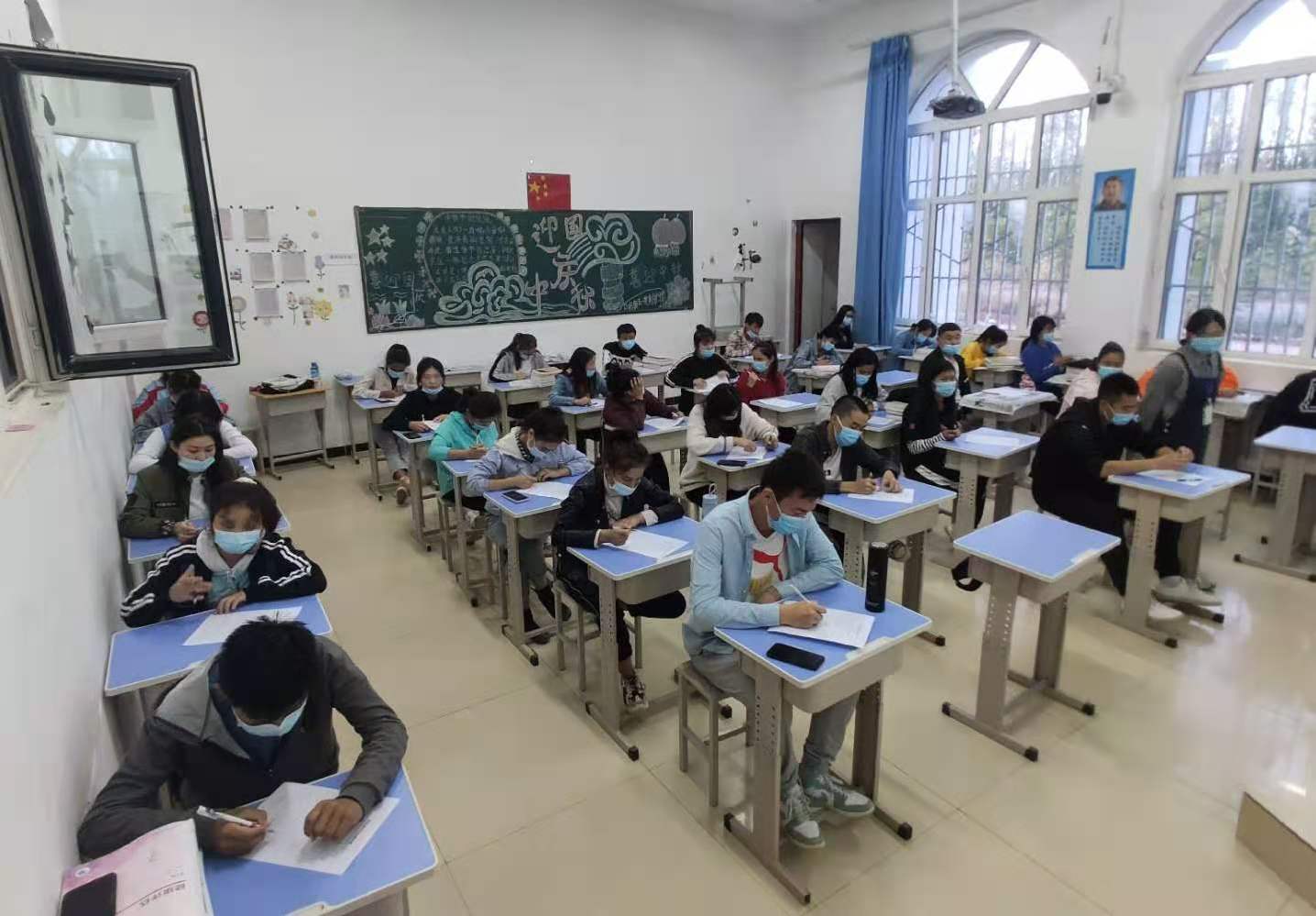 为了庆祝国庆、中秋双节,加强同学们的爱国主义思想和感情,增强同学们的党团知识,提高同学们的学习积极性,营造良好的学习氛围。由我院团委主办的党团知识竞赛于2020年10月6日分别在各二级学院分开举行。题库十分丰富,涉及到党团知识、历史、地理、经济以及当代社会发展形式的方方面面。这次比赛以考试的形式进行,考试刚刚开始,同学们纷纷提笔作答,考场十分安静,笔尖与试卷触碰所发出的沙沙声,像是在谱写一曲献给祖国生日之歌。